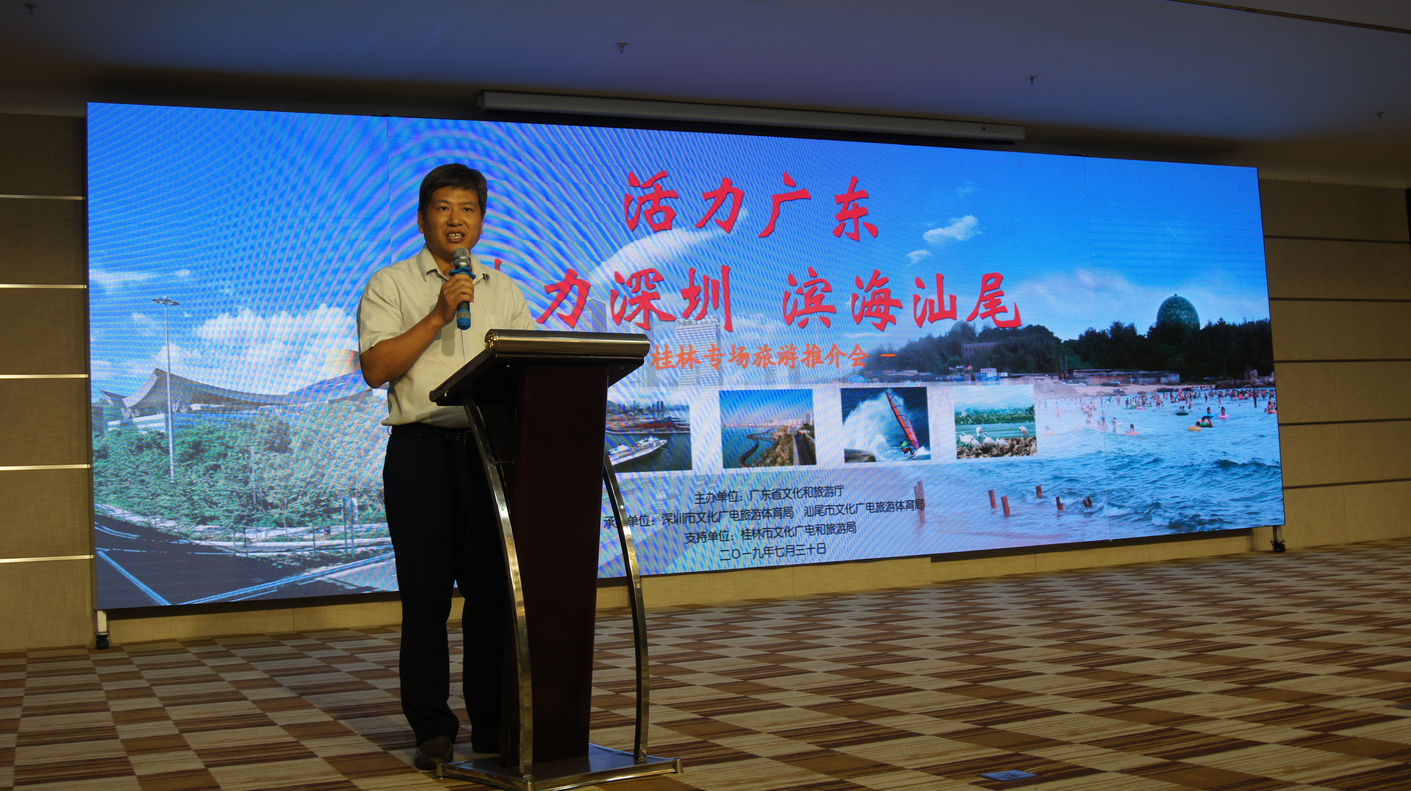 7月29日至8月2日,由广东省文化和旅游厅主办,深圳市文化广电旅游体育局、汕尾市文化广电旅游体育局承办的“活力广东--魅力深圳·滨海汕尾”旅游联合推介会分别在广西桂林、贵州遵义举行。两场推介会得到了桂林市文化广电和旅游局和遵义市文体旅游局的大力支持,分别邀请了桂林市和遵义市各大旅行社及各主流媒体共同参与,共聚交流,共商合作。在推介会上,通过播放视频、宣传片,派发宣传资料展示深圳、汕尾的旅游风光。汕尾市文化广电旅游体育局副局长田得宏代表推介团致辞,热情邀请桂林、遵义旅游业界来深圳、汕尾考察踩线、休闲度假。两场推介会每场有近百名旅游企业参加,气氛热烈,取得了圆满成功和良好的宣传效果,广大旅行社对深圳和汕尾的旅游资源有了更直观的认识和深入的了解。