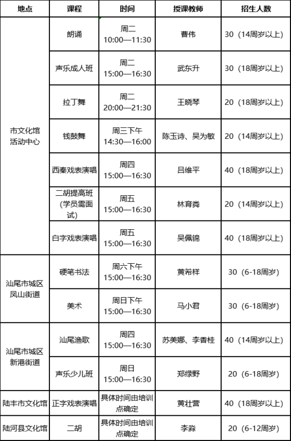 汕尾市文化馆培训报名时间:2023年3月22日10时——26日17时。