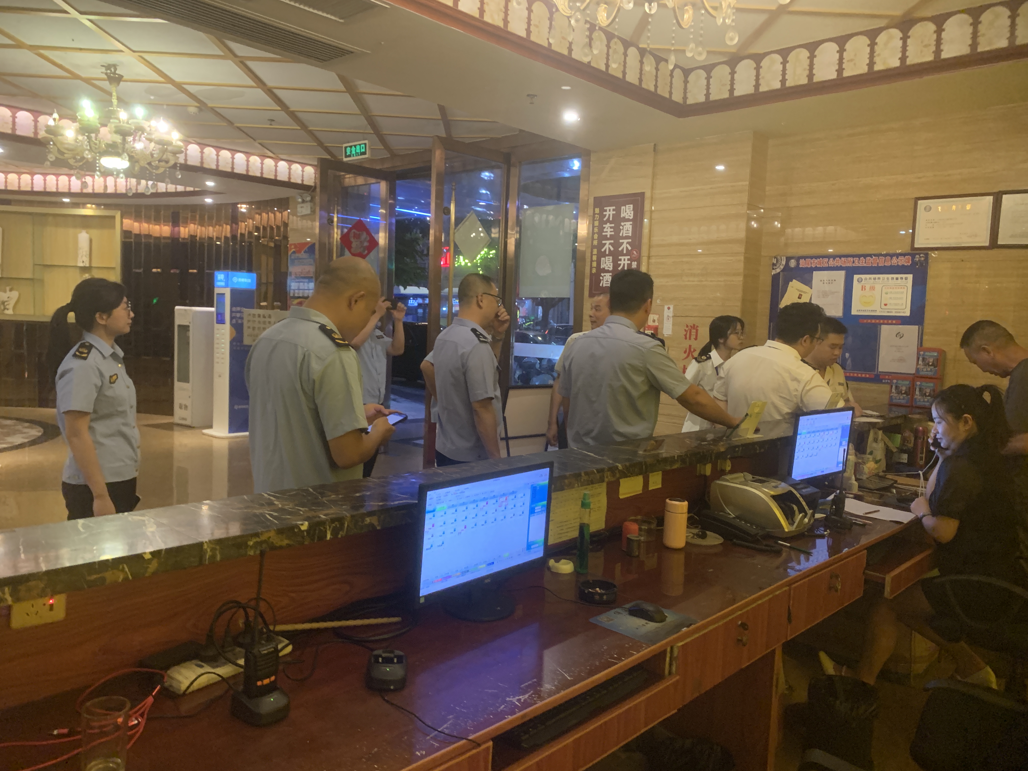 本次专项检查覆盖综合医院、住宿场所、文化娱乐场所供水单位等重要场所,围绕医疗卫生、经营单位主体资质、人员资质具备情况及传染病预防措施落实情况、从业人员健康证持有情况及卫生管理制度落实情况、顾客用品用具、公共区域清洁消毒执行情况、游泳场所水质每日自检公示情况与循环过滤设备运转状态、二次供水单位设施维护、定期清洗消毒及水质检测报告公示情况等关键环节进行深入排查。截至目前共检查1家综合医院,马宫街道保利金町湾旅游度假区和市区的部分住宿场所、包括菲凡、魅力会、唐会等多家娱乐文化场所,同时检查辖区内的粤海水务公司、宝楼村集中供水和鸿景园二期、金海明珠、名门御庭等部分小区二次供水的供水情况。此次节前检查共派出执法人员84人次、执法车辆20余辆次,共发现问题下达卫生监督意见书18份,并要求相关负责人立行立改。同时根据“谁执法,谁普法”的相关要求,执法人员向经营管理人员宣传卫生法律法规,将有关要求落实到位,保证合法经营。进一步压实经营主体责任,增强责任意识,切实提升汕尾市城区的假期旅游服务质量。