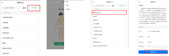 通过《人体导航图》,可以查看人体各部位的疾病介绍。