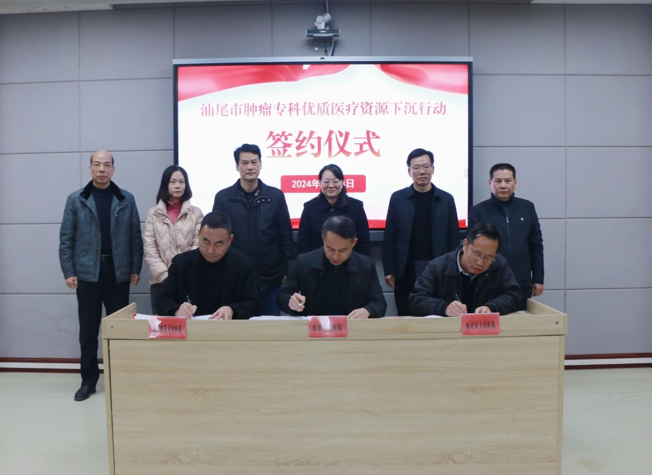 会上,市卫生健康局组织肿瘤专科优势医院与合作医院签署合作协议,深汕中心医院作为优势医院,与汕尾市人民医院、汕尾逸挥基金医院、海丰县彭湃纪念医院、陆丰市人民医院、陆河县人民医院、红海湾经济开发区人民医院签订肿瘤专科优质医疗资源下沉行动合作协议,以签署协议的形式推动建立相关病种肿瘤诊疗紧密联系机制,进一步优化医疗资源配置和共享,促进汕尾市肿瘤专科优质医疗资源下沉。