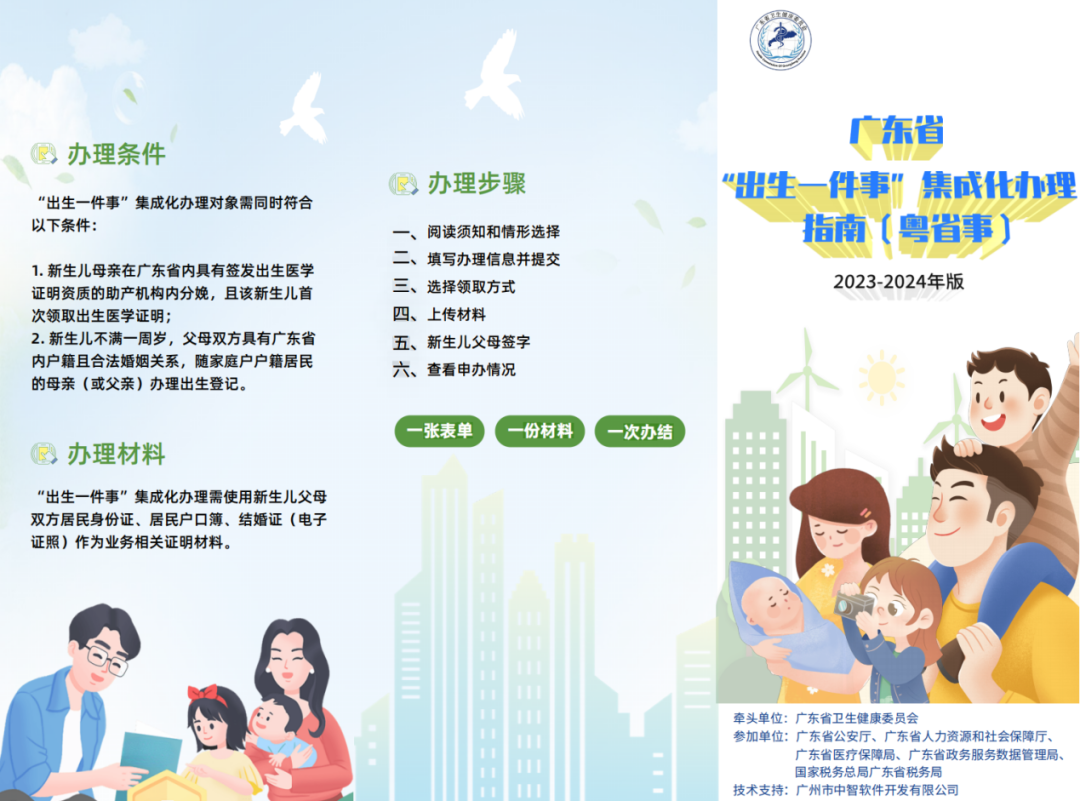 广东省“出生一件事”集成化办理工作是贯彻落实国家、省关于推进“一件事一次办”打造政务服务升级版的重要举措,提升生育政务服务标准化、信息化、便利化水平,做到数据多跑路、群众少跑腿,切实提高群众办事体验感和获得感。