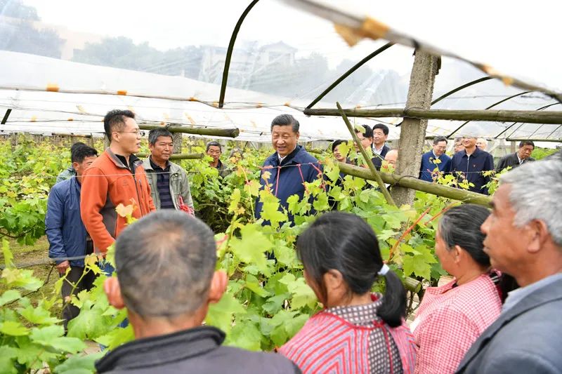 4月25日至27日,中共中央总书记、国家主席、中央军委主席习近平在广西考察。这是25日上午,习近平在桂林市全州县才湾镇毛竹山村,走进葡萄种植园,同农技人员和村民亲切交流。新华社记者 殷博古 摄