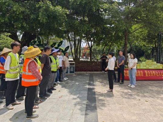 炎炎夏日送清凉,丝丝关怀润人心。关心关爱高温一线劳动者的身体健康和劳动安全,传递党组织的关心关爱,是一项重要工作。8月30日上午,汕尾市公用事业事务中心主任颜晓宇和星晟物业公司党支部书记、总经理姚磊一行前往玉台山慈云公园开展“党建引领送清凉 夏日关怀泌人心”为主题的夏日送清凉慰问活动,为坚守在市政绿化养护一线的绿化养护工人们送去慰问与关怀,撑起夏日里的“遮阳伞”。