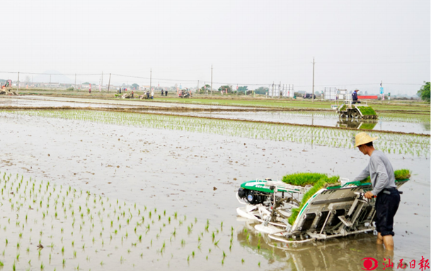 现代化农用机械助力春耕,大大提高插秧效率。