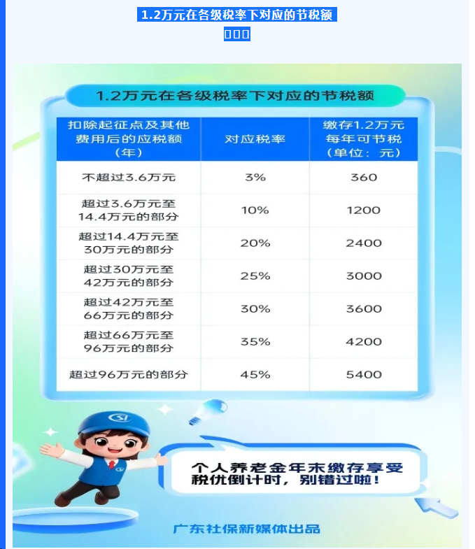 1.2万元在各级税率下对应的节税额
