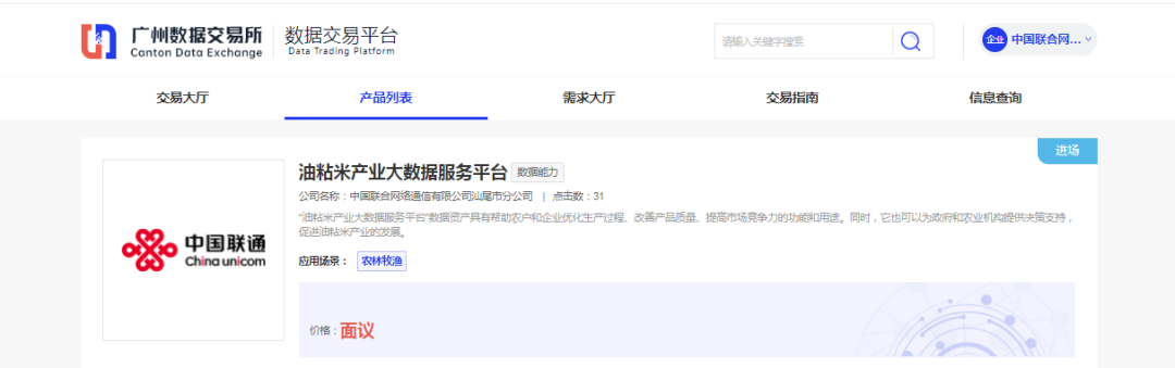 此次上架的数据产品是在市、县两级政数部门的统筹协调下,由中国联通汕尾市分公司深入企业调研、自主研发形成的数据应用产品,以海丰县有“全国名特优新农产品”“国家地理标志保护产品”之称的海丰油粘米全产业链数字化转型为落脚点,将油粘米在生产、收购、加工、仓储、销售多个环节形成数字化体系,海丰县政数局负责人表示,下一步将尽快促成该产品推广到农村普惠金融、种植保险风控等场景的交易,以数据要素带动种植、管理、销售提质增效,提升油粘米产业生产服务、品牌推广、管理决策等核心能力,树立广东油粘米大流通、统一品牌标杆目标。