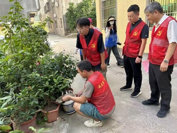 为防控基孔肯雅热、登革热等蚊媒传染病,10月17日,市驻广办以党建为引领,结合党日活动,组织党员干部与东涌镇赤古村干部组成联合工作队走街串巷、进门入户开展“入户联心、全民爱卫”爱国卫生统一行动,重点对背街小巷、房前屋后、绿化带等区域进行全面清理,清除生活垃圾、废弃杂物等卫生死角。针对易积水区域,通过翻盆倒罐、疏通沟渠等方式,消除闲置容器积水,从源头阻断蚊虫繁殖链,有效降低蚊媒病媒滋生风险。