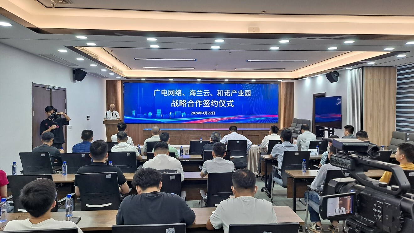 随后,广东广电网络汕尾分公司党委委员、副总经理陈华泰代表分公司与和诺数字产业园和深圳海兰云数据中心科技有限公司签订了战略合作协议书。