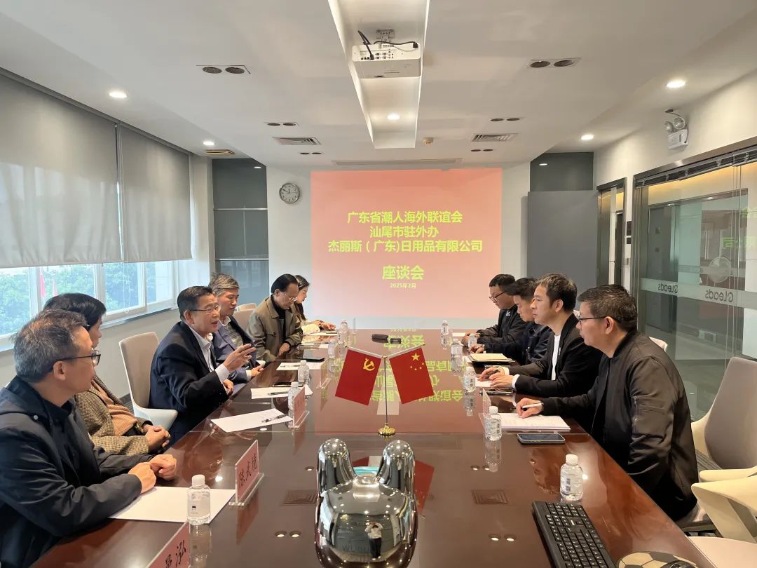 3月17日,汕尾市驻外办党组成员、副主任田得宏陪同广东省潮人海外联谊会(以下简称省潮联会)轮值会长钱宏林一行拜访调研位于广州高新技术产业开发区的汕尾籍优秀乡贤企业杰丽斯(广东)日用品有限公司,受到了王焕武董事长等的热情欢迎,并参观了厂区和展区,进行了座谈交流。省潮联会欧阳贞林、欧阳永晟、林雅、张曼泓和市驻外办陈武境等同志参加活动。