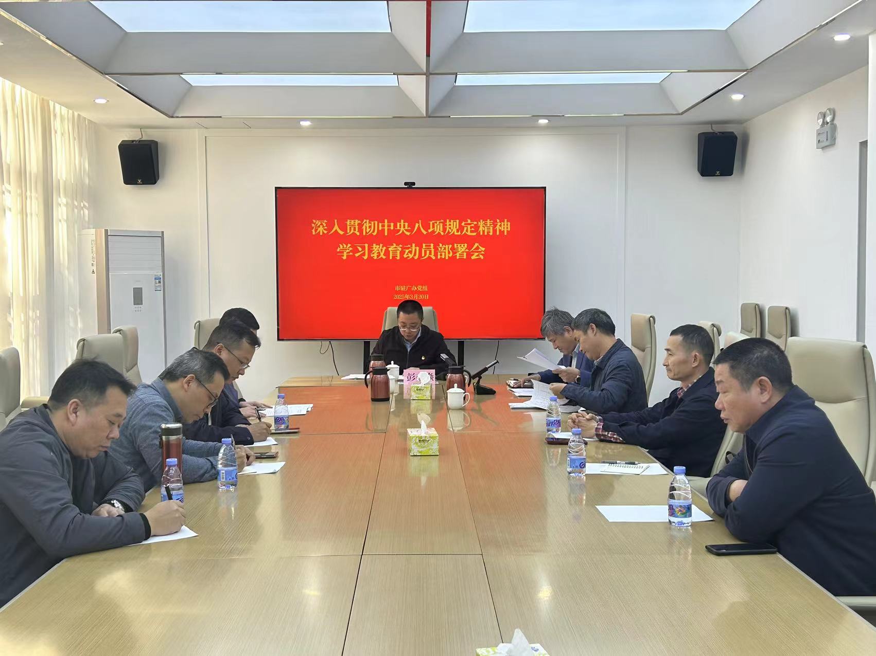 3月20日下午,市驻广办召开党组(扩大)会议,传达党中央对深入贯彻中央八项规定精神学习教育的部署要求,以及市 委常委会会议精神,审议汕尾人民政府驻广州(港澳、深圳)办事处《关于开展深入贯彻中央八项规定精神学习教育的实施方案》,研究部署学习教育工作。市驻广办党组书记、主任彭奎焱主持会议并讲话,党组成员、全体干部职工参加会议。