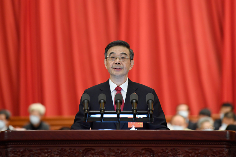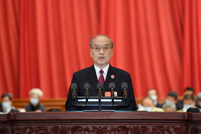 5月25日,十三届全国人大三次会议在北京人民大会堂举行第二次全体会议。最高人民法院院长周强代表最高人民法院作工作报告。新华社记者 岳月伟 摄
